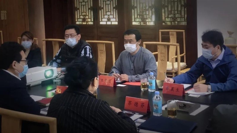 在参观和介绍公司防疫情况后,方标世纪党支部书记徐书剑简要介绍了公司近况,表示方标世纪会积极防控疫情,保障员工的健康安全,作为天津市工人先锋号团队会迎难而上,共克时艰,力求稳健发展;作为天津首批瞪羚科技企业总建筑师沈勇嵬随后介绍了率队发明创造高温灭杀病毒呼吸机的专利设计,并与在会领导共同探讨技术帮扶政策与实施,市场监管委苏德芬副主任表示支持企业创新,要求主管部门推进科技研发知识产权及商标保护并提速申报时间,尽快落实检验结果用于服务社会;